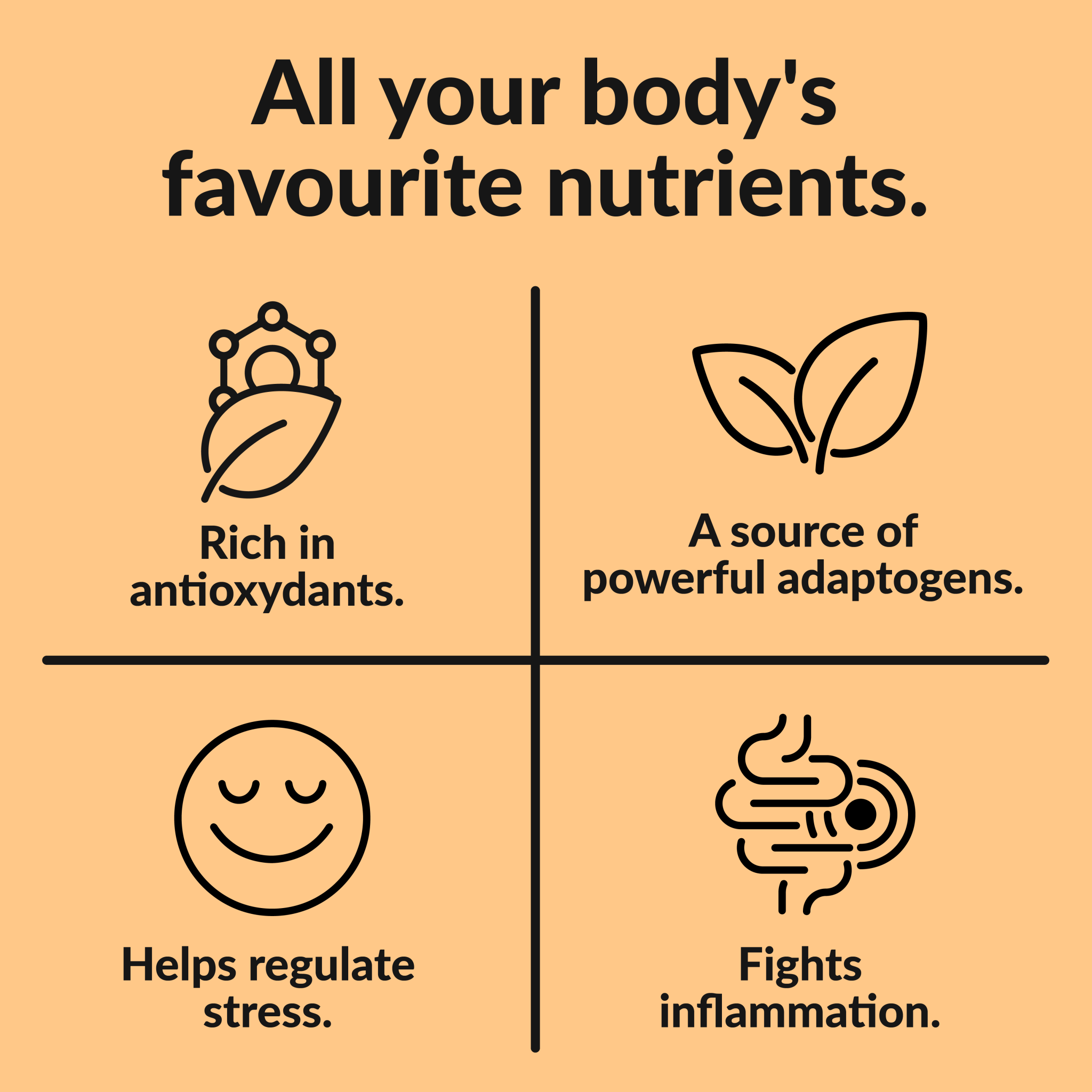 A sweet and creamy latte with a soothing blend of natural adaptogens and turmeric.